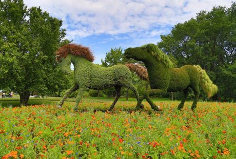 Na jednom takmičenju u Montraelu prikazane su okromne šarene skulpture u obliku životinja, ljudi, pa čak i mužičkih instrumenata. Materijal od kojih su napravljene nije kamen, drvo ili neki jači materijal već cveće, biljke, šimšir.