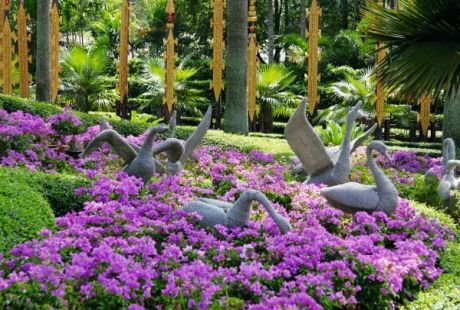 Posebno se ističe Brdo leptira, u kome brojne cvetne vrste formiraju prelepe leptire i svojim šarenilom predstavlja pravu poslasticu za oči. Ova oaza je i dom za najviše vrsta palmi, bonsaija i kaktusa. Pored prelepih vrtova, ovaj ogroman kompleks čine i vodopadi, brojne fontane i jezerca, a može se obići mini-busevima, biciklima i pedalinama u obliku labudova, dok je posebna atrakcija jahanje slonova.