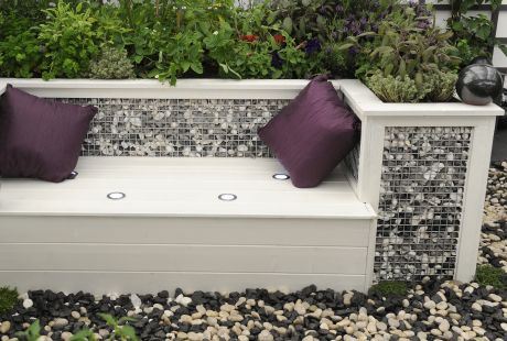 Istim materijalom su "opšivene" i ivice gabiona pa je tako dobijen unikatan komad baštenskog nameštaja. Tu je čak i ugrađeno osvetljenje za lepe večernje trenutke i sjajne svetlosne efekte u bašti, kao i atraktivni satenski jastučići.
