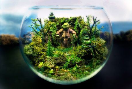 U trenucima dosade, umetnik iz Minesote, Toni Larson, otkrio je svoj talenat za izradu interesantnih ukrasnih terarijuma. Staklene posude pretvorio u pravi mali raj za svačije oko. Inspiraciju je pronašao u filmovima, pa njegove terarijume krase Joda i Kin Kong.