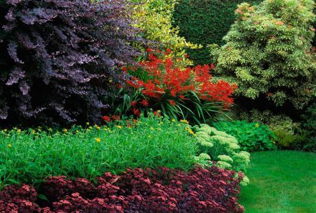Između cvetnih žbunova i ukrasnih trava možete tokom cele godine da održavate strukturu bašte, čak i kada u zimu lišće svih sorti berberisa opadne u živoj ogradi.