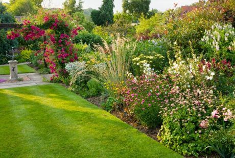 Uvek je „dobitna kombinacija” kada se nešto čega ima dosta u bašti pojavi u još jednom detalju. Imali smo to i kada se u baštu preslika detalj fasade. U proširenom delu su i ležaljke, ali i živopisna leja u kojoj dominiraju perene i ukrasne trave, uglavnom u crvenoj ili nekoj drugoj jarkoj boji, što je slučaj i s lejom na kraju bašte pored drvene kućice za alat.