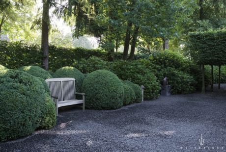 Veliko dvorište u holandskom gradu Zajstu sastoji od tri terase i jedne boje, ali dinamična struktura šimšira i ostalih zelenih elemenata učinila da ovaj vrt deluje kao iz bajke.