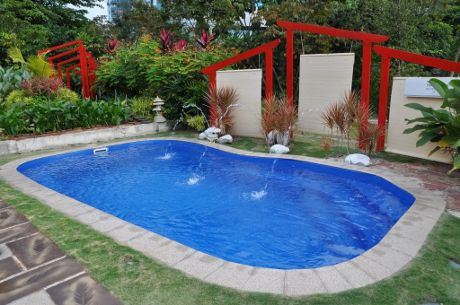 Ova bašta ima više prednosti već na prvi pogled. Prvo što se odmah vidi jeste bazenčić, ali nikako ne treba zanemariti njen veoma lep, gotovo kvadratni oblik, koji umnogome doprinosi njenom sveukupnom izgledu. U bašti smo zatekli i kućicu