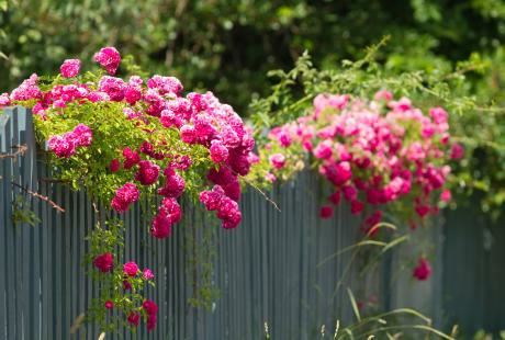 Treba istaći je da se moderna bašta skoro ne može zamisliti bez neobičnih oblika, a posebno ako je kuća modernijeg stila. Od cvetnih vertikala tu su žbunaste ruže i ruže puzavice na obeliscima. Posredi su čestocvetajuće rambler ruže, ljubičaste („Perennial Blue“) i bele, prošarane roze („Perennial Blush“). Za žbunaste ruže treba istaći da se odlikuju lepim mirisom.