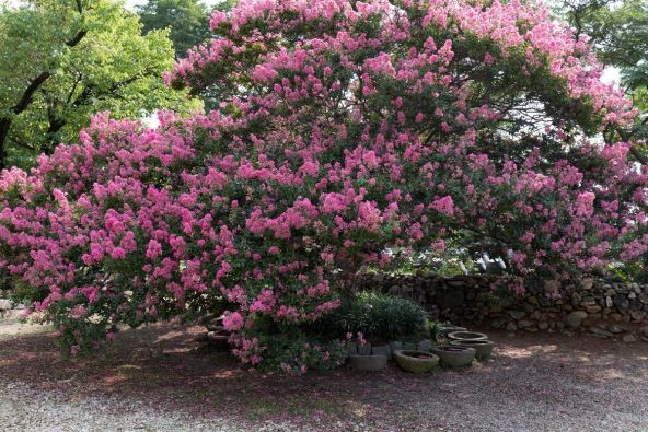 Indijski jorgovan (Lagerstroemia) raste kao malo listopadno drvo ili kao veliki žbun, maksimalna visina mu je 4m, a širina 2-2,5m. Dobro podnosi orezivanje i voli osunčana mesta. Cveta krupnim cvastima ciklama boje, a u jesen biljka menja polako boje lišća - od zelene, preko žute, narandžaste i crvene.