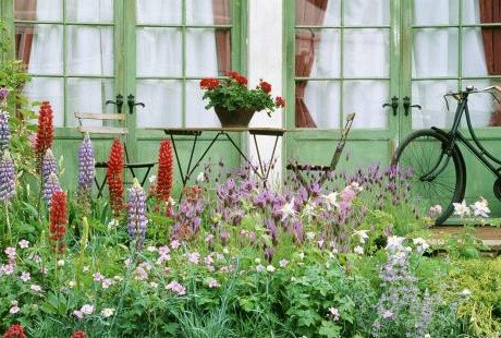 Najveći broj biljaka cveta preko celog leta. Najlepši kontrast predstavljaju crvena lupina i belo šlajer cveće. Zanimljivo izgleda loptasto formiran crveni berberis. Ali, treba istaći da se u delu pored šupe (bočni deo kuće), nalazi zasađeno začinsko bilje, to jest koristan vrt ili mali povrtnjak, do kojeg nas vodi loptasto žbunje s bobičastim voćem. Zanimljivo je da se u bašti nalazi visoki delfinijum (do 2 m), koji cveta u junu i julu pa ponovo u septembru i oktobru. U fuge na terasi posađen je venčić, čije se pepeljasto lišće zadržava i tokom zime.