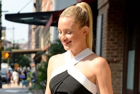 Jednodelni kombinezon sa potpisom francuskog dizajnera Rolanda Moureta istakao je njenu vitku figuru, a grudi su naglašene, premda nema dubokog izreza - široke bele bretele ukršetene su oko vrata i tako formiraju efektno slovo V.