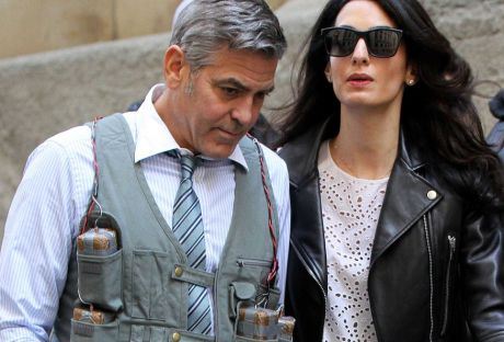 Bela majica, pocepane farmerke i crna kožna jakna učinili su da Amal izgleda skoro kao tinejdžerka, a opuštenoj atmosferi koja vlada fotografijama doprinosi i zanimljiv Džordžov "stajling" - prsluk ispunjen lažnim dinamitom, očigledno za potrebe aktuelno pripremljenih filmskih kadrova.