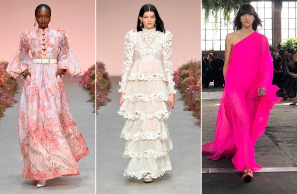Na reviji "Dolce and Gabbanna" prikazani su modeli koji ističu ono najlepše na damama, poput glokna haljine u pink boji. U kolekciji modne kuće "Chanel" ističu se komadi u nijansama ružičaste, dok su se dizajnerke "Ulla Johnson" i "Isabel Marant" opredelile za nežnu lila boju i bogate volane.