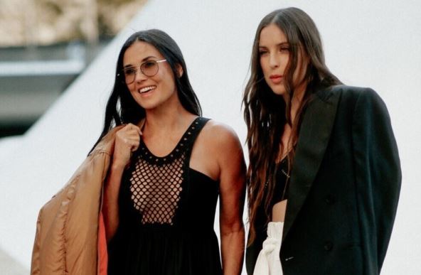 Glumica se na reviji dizajnerke Stele Makartni pojavila u društvu ćerke Skaut Vilis, a za ovu priliku obukla je dugu crnu haljinu s zanimljvim dekolteom, ravne gumene čizme i efektnu bomber jaknu.