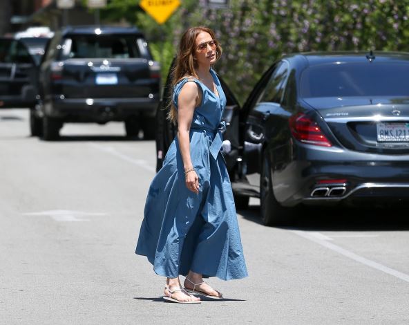 Latino diva uživa u ljubavi i, čini se, nije kao ranije opterećena izgledom. Ulicama Los Anđelesa prošetala je u plavoj ležernoj haljini, sa V izrezom i nabranim naramenicama. Struk je istakla kaišem koj ije vezala u mašnu, a kombinaciju je zaokružila jednostavnim ravnim sandalama.