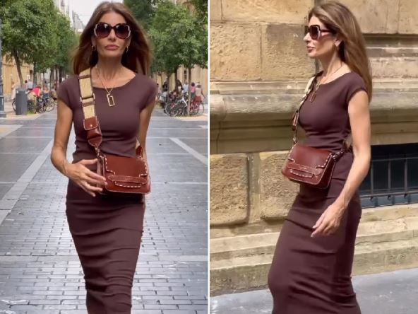 Njen je stil damski i ženstven, ali sada je predstavila jednu jednostavnu ali efektnu kombinaciju. Haljinu kratkih rukava braon boje koja je prikladna i za posao, ali i za večernji izlazak, a posebno ako se dopuni detaljima, baš kao što je to učinila Pilar.