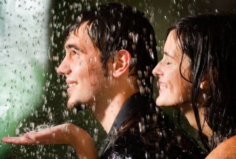 Pod kapima koje su je kvasile, ljubila mu je vrat i nežnu kožu ispod uha. Jednu ruku zavukla mu je u kratku mokru kosu, grleći ga drugom, ležeći na njegovim mišicama kao na najudobnijem ležaju. A onda nasloni glavu na njegovo rame i umiri se kao da sada, zaista, nema više snage.