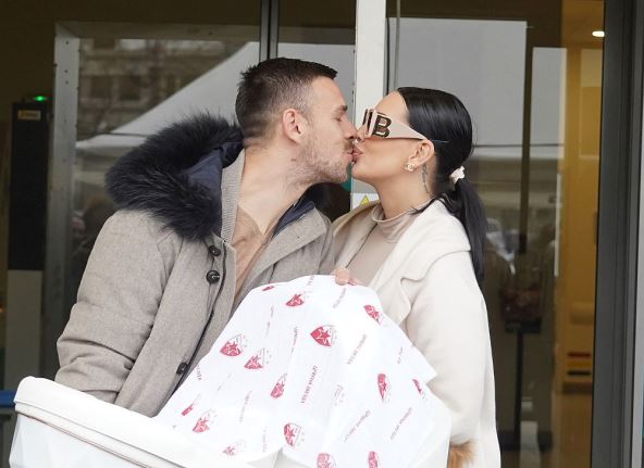 Katarina Grujić je izašla iz porodilišta u pratnji svog supruga Marka Gobeljića, a Zvezdin fudbaler je nosio kolevku sa ćerkicom Katjom, rođenom pre četiri dana.