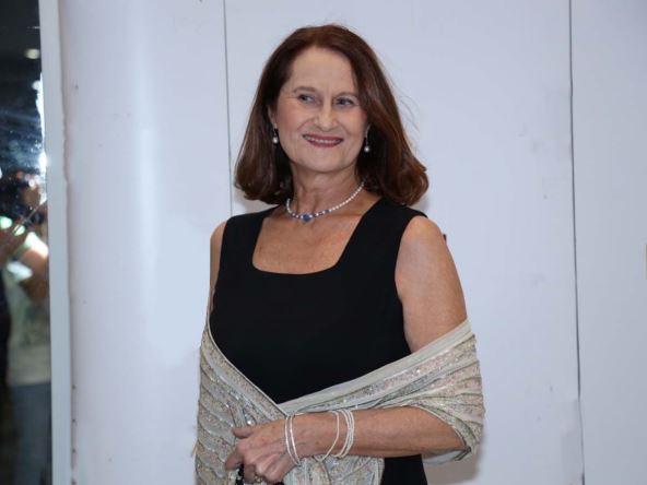 Na proslavi povodom početka emitovanja novih epizoda serije u kojoj igra lik Ljiljane Karamatijević Lile, bivša supruga Lazara Ristovskog blistala je u elegantnoj crnoj haljini, uz koju je ponela svetlucavu ešarpu.