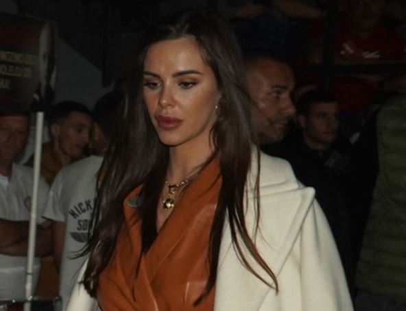 Bogdana se za ovu priliku posebno sredila. Obukla je braon kožnu haljinu i čizme sa visokom potpeticom u sličnoj nijansi. Preko je imala i jednostavan, elegantan beli kaput.