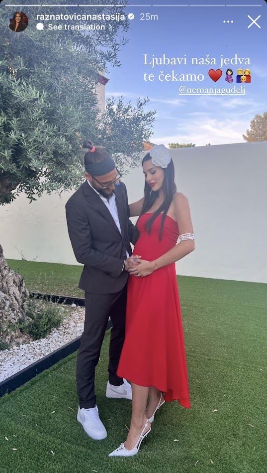 Srpski fudbalski reprezentativac Nemanja Gudelj i Anastasija Ražnatović čekaju prvo dete, a pevačica je u četvrtom mesecu trudnoće. Lepa vest stigla je nakon godinu dana veze, a zaljubljeni par boravi u Španiji, gde Nemanja ima profesionalni angažman.