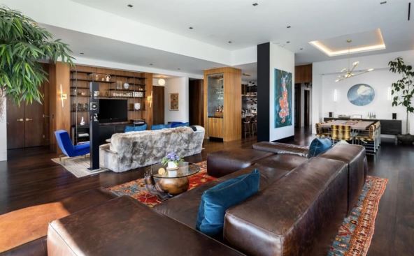 Nekretnina poseduje modernu kuhinju i bar, kancelariju, bioskop, kao i glavni apartman sa mermernim kupatilom. Stan je stvoren kombinovanjem dva manja stana u jedan veći prostor, sa dve velike spavaće sobe i tri kupatila.