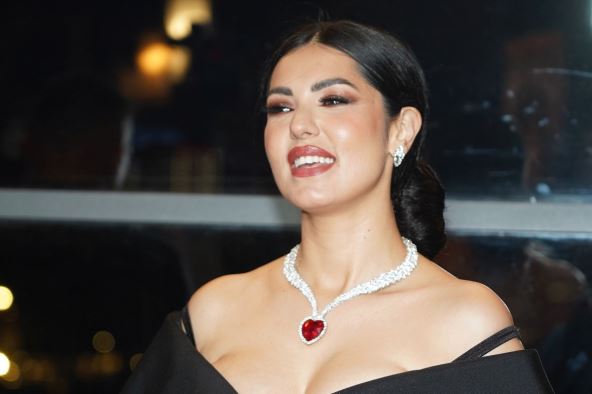 Tanja Savić je održala promociju svog novog albuma, a pojavila se u crnoj dugoj haljini, sa efektnom ogrlicom i velikim crvenim srcem na grudima.