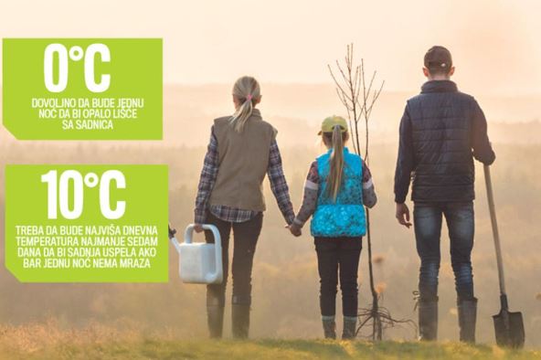 Neophodno je da bar jednu noć bude mraz, odnosno temperatura nula stepeni ili niža, ili da bar sedam dana u kontinuitetu najviše dnevne temperature budu oko 10 stepeni. Pristupačan teren- Dok god se temperature ne spuste na taj nivo, ne smemo da pošumljavamo.
