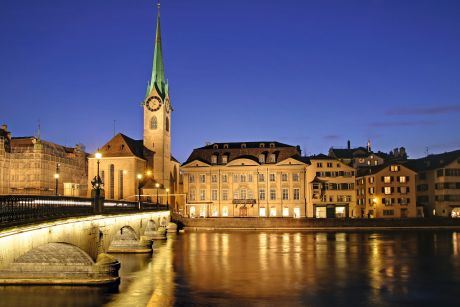 Grosminstersku crkvu iz 12. veka na obali reke Limat prepoznaćete po dva identična zvonika i romanskom stilu. Zvonici su prvobitno bili sagrađeni od drveta, ali su izgoreli u požaru 1781. godine. Odatle se pruža neverovatan pogled na čitav grad, njegove krovove i tornjeve, reku i jezero, pa stoga vredi da izdržite uspon od 187 stepenika.