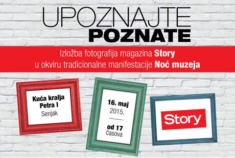 Izložba "Upoznajte poznate" magazina Story biće održana u Kući kralja Petra Prvog na Senjaku, 16. maja 2015. godine od 17 do 23 sata.
