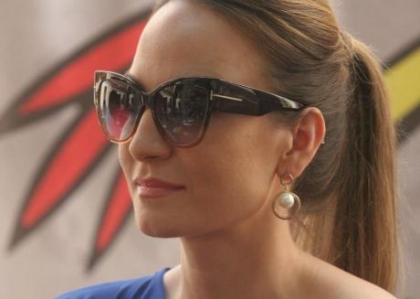 Koketno vezana u čvor, bela košulja je apsolutni modni hit leta, a simpatičan šeširić skida sa nje onu auru muzičke dive kojom inače pleni.