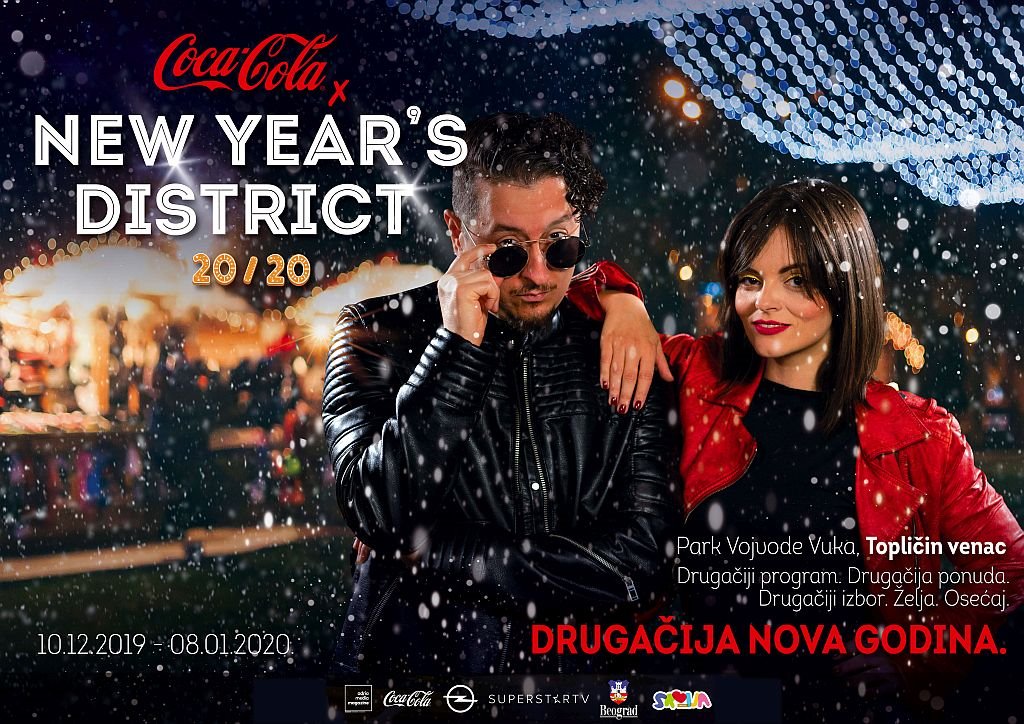 Adria Media Magazine u saradnji sa kompanijom Coca Cola od 10. decembra do 8. januara 2020. godine donosi potpuno jedinstven praznični festival New Year’s District. Na Topličinom vencu u Parku vojvode Vuka očekuje vas svakodnevna novogodišnja zabava za sve generacije.