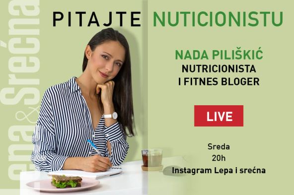 Fitnes blogerka i nutricionistkinja Nada Piliškić družiće se sa čitateljkama magazina Lepa i Srećna na našem Instagram nalogu gde će davati savete u vezi sa ishranom, pričati o dijetama, fitnesu, fizičkoj aktivnosti, ali i razbiti mnoge mitove u vezi sa zdravom i nezdravom hranom.