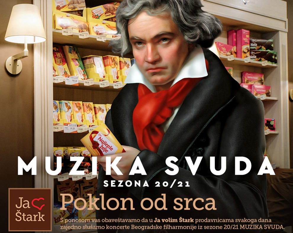 Ovom akcijom, „Ja Volim Štark“ želi da svojim vernim potrošačima, napravi još prijatniju atmosferu u prodavnicamatako da, dok kupuju omiljene proizvode, uživaju uz zvuke Betovena, Mocarta i mnogih drugih kompozitora u izvođenju Beogradske filharmonije. Imajući u vidu aktuelnu situaciju, Filharmonija je celokupnu sezonu izmestila i van koncertne dvorane. Zbog ograničenog broja publike koji može da je sluša u sali, Beogradska filharmonija snima svoje nastupe