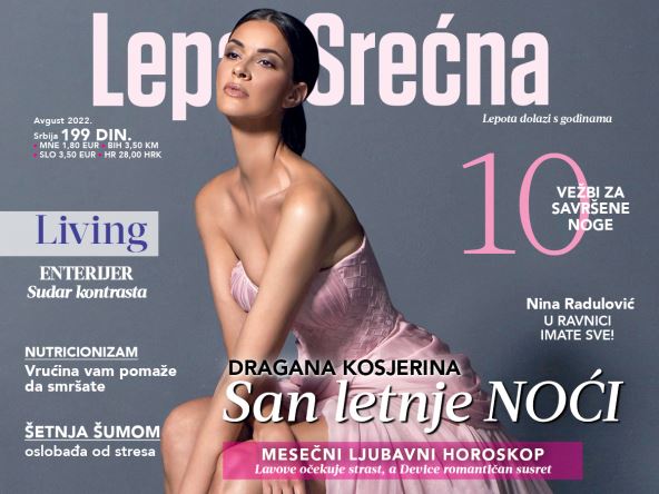 Zaštitno lice RTS-a i jedna od najlepših voditeljki Dragana Kosjerina blistala je na slikanju za naslovnu stranu ovog broja u ekskluzivnim kreacijama Stefana Đokovića iz njegove nove kolekcije „Triaton”, koja je nedavno bila prikazana na Nedelji visoke mode u Parizu.