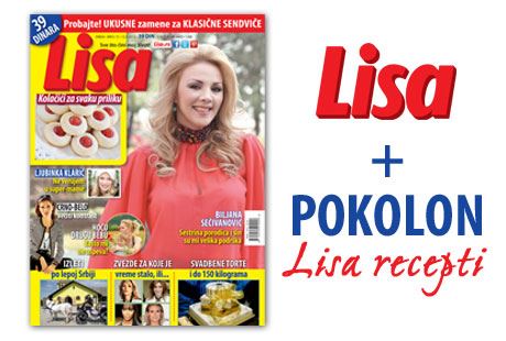 U novom broju magazina Lisa koji izlazi 12. aprila 2013. godine očekuje vas poklon Lisa recepti. Pored brojnih zanimljivih priča, intervjua i korisnih saveta, upoznajte mlade talente i saznajte kako su poznati super modeli izgledali nekada a kako izgledaju danas.