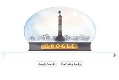 Uz stilizovan logo sa istaknutom Statuom pobednika na beogradskom Kalemegdanu, na naslovnoj strani velikog internet pretraživača Gugla stoje i reči ispisane ćirilicom: Srećan Dan državnosti Srbije.