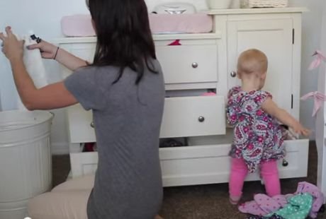U jednom delu možemo videti klasičnu scenu - mama pokušava da složi veš, ali ne brže nego što ćerkica može da ga razvrca na pod.