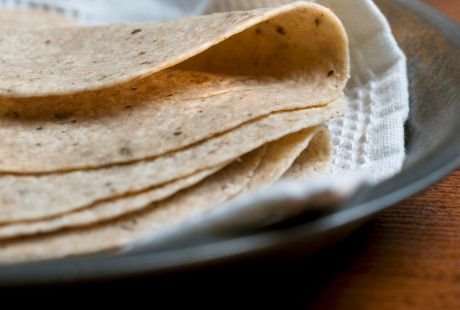 Prosejte brašno i pomešajte ga sa praškom za pecivo i solju. Dodajte puter sa sobne temperature i utrljajte ga rukama. Dodajte vodu i umesite glatko testo. Ostavite da odstoji sat vremena pa odvajajte kuglice i razvucite u tortilje. Pecite na suvom tiganju sa obe strane dok se ne pojave crni mehurići.