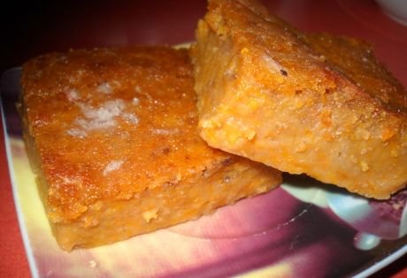 Potom dodati mleko, ulje sok i jaja. Rendanu bundevu kratko prokuvati i dobro ocediti, pa dodajti masi. Veći "djuveč" obložiti peki papirom i sipati masu pa staviti u već zagrejanu rernu, peći na 200C oko dvadesetak minuta - probodite iglom.