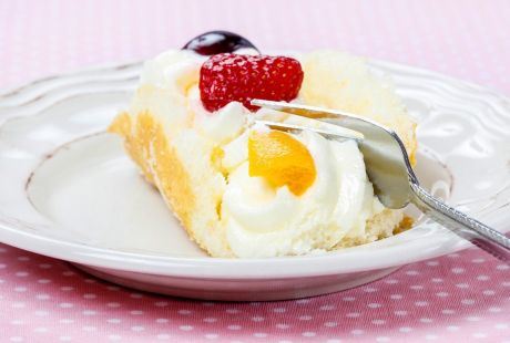 Priprema: Zagrejte rernu na 180 stepeni. Žumanca vazušasto umutite sa 60 g šećera. Belanca umutite u čvrst sneg sa 60 g šećera i malo soli. Belanca postepeno umešajte u umućena žumanca. Dodajte brašno i skrob. Promešajte, pa smesu stavite u podmazan kalup (prečnika 26 cm). Pecite oko 35 minuta. Izvadite iz kalupa i ohladite. Isecite na komade.