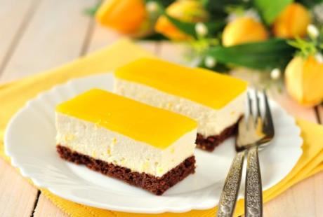 U soku od pomorandže skuvati pudinge od vanile sa šećerom. Kada je puding kuvan, treba posudu sa pudingom staviti u hladnu vodu i konstantno mešati dok se puding ne ohladi skoro do kraja! Kada je gotovo ohlađen treba ga kašikom premazati preko prvog krema od sira.