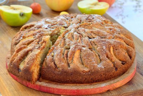 Tepsiju prečnika oko 23 cm premazati uljem i posuti brašnom. Rernu zagrejati na 180 stepeni. U posudu sa smeđim šećerom dodati ulje i viljuškom ih pomešati da se šećer navlaži, a zatim mutiti mikserom nekoliko minuta. Dodati jaja i vanilu i nastaviti mutiti dok smesa ne postane kremasta. U drugu posudu prosejati brašno, so, cimet i sodu bikarbonu. Suve sastojke dodati vlažnim i promešati dok se ne povežu. Dodati kriške jabuka i orahe.