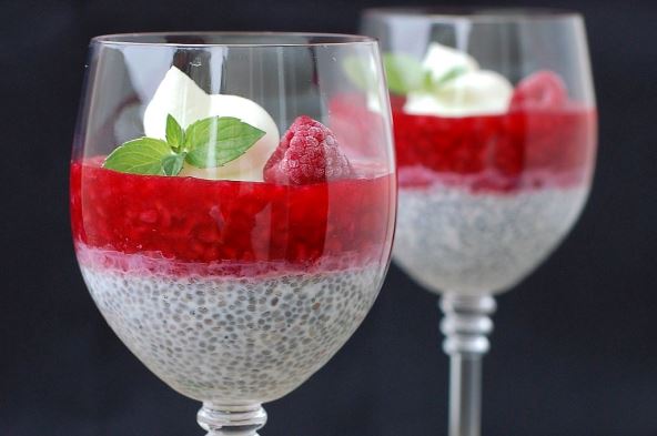 Izgnječite maline, dodajte 2 kašike čia semenki i ekstrakt vanile. Poklopite i ostavite u frižideru preko noći.