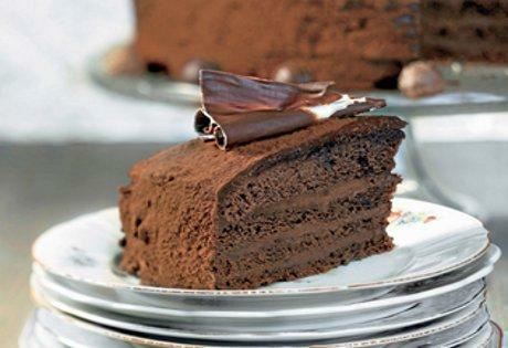 Zagrejte slatku pavlaku pa je sklonite sa vatre. Krupno naseckajte preostalih 400 g čokolade koje mešajući rastopite u pavlaci. Izlijte smesu u 2 visoke posude za mućenje i ostavite 2 sata u frižideru. Čokoladno testo presecite na 4 lista pa ih poprskajte rumom. Ohlađenu čokoladnu smesu mešajte minut. Polovinu dobijenog krema razmažite na 3 lista testa, slepite ih i pokrijte preostalim listom, premažite tortu ostatkom krema i ostavite u frižider. Pre posluživanja pospite dvema kašikama kakaa i ukrasite listovima čokolade.
