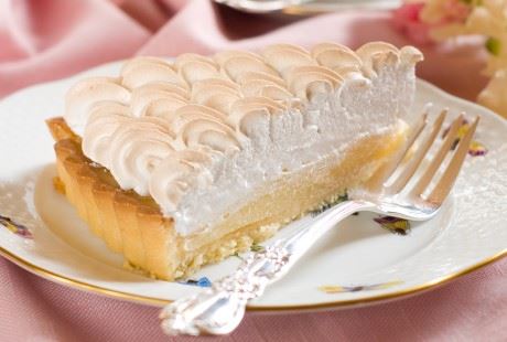 Rernu zagrejte na 190 stepeni. Zamesite sastojke za testo, pa testom obložite podmazani kalup za kolač. Rernu smanjite na 170 stepeni i pecite 17 minuta. Puter, šećer u prahu i koru pomorandže penasto umutite. Umešajte jaja i žumance, pa dodajte pavlaku, prah za puding i gustin. Raspodelite po biskvitu i pecite 50 minuta. Rernu zagrejte na 200 stepeni. Sastojke za beze dobro umutite, pa ravnomerno rasporedite po kolaču i pecite još 15 minuta.