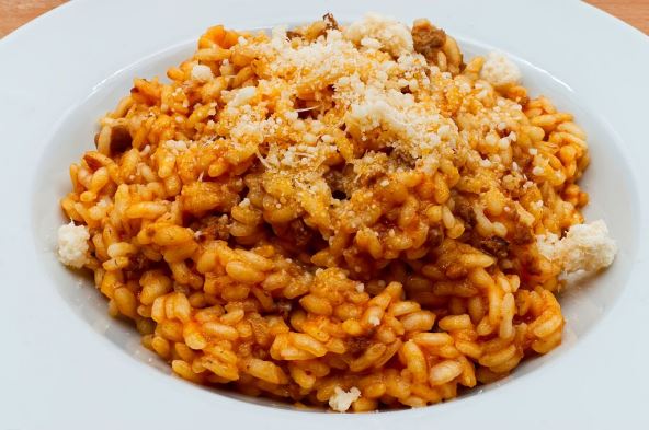 Pratite kako se pirinač kuva, dodajući pomalo vodu i mešajući tako da sos ponovo postane gust.