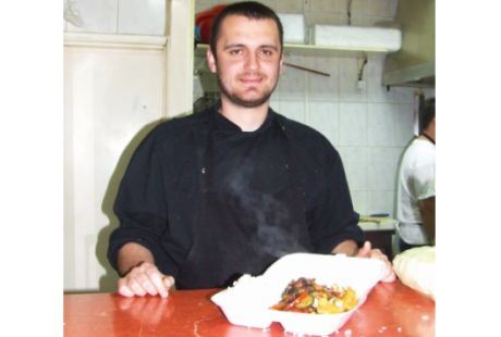 "Obrok se sastoji od mesa (piletina, teletina ili svinjetina), pirinča, grilovanog povrća i sosa po želji. Svi sastojci su veoma kvalitetni, a začine sada nabavljamo u Kineskom tržnom centru gde je izbor vrlo bogat. Hrana je prilagođena našem ukusu, jer da je spremamo baš kao u Kini, to bi ovde bilo prilično bljutavo", a on otkriva da je tajna rastresitosti pirinča u tome da ga, kad je kuvan, „presečete“ hladnom vodom.