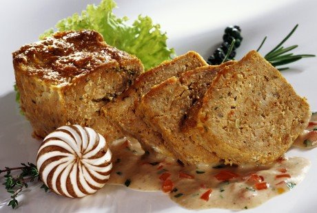 Dugačak valjkast kalup (može i onaj za srneća leđa) podmažite margarinom ili maslacem, pospite prezlama, obložite tankim režnjevima pancete i stavite pripremljenu smesu. Ako su režnjevi dugački, prebacite ih odozgo preko vekne. Veknu ispecite u vodenom kupatilu, odnosno, u jedan veći, dublji pleh sipajte vodu i stavite kalup sa mesom, pri tom pazeći da voda dopire do polovine kalupa.