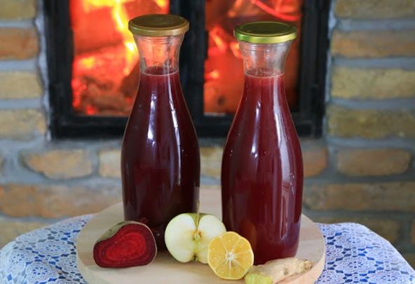 Zdrav sok bez kuvanja, po starom receptu, odličan za je imunitet i anemiju. A sve što vam je potrebno za ovaj moćni napitak su cvekla, jabuka, šargarepa, limun, med i đimbir.