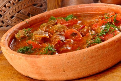 Priprema: Iseckajte meso, crni i beli luk. Zagrejte puter, pa propržite meso, dodajte luk. Posolite i pobiberite. Pospite meso brašnom, promešajte pa sipajte bujon i ostavite da se kuva 75 minuta povremeno mešajući. Dosipajte vodu ako je potrebno. 150 g pavlake posolite i pobiberite, pa je umešajte u gulaš. servirajte sa ostatkom pPikandntiavlake i pospite kaparima.