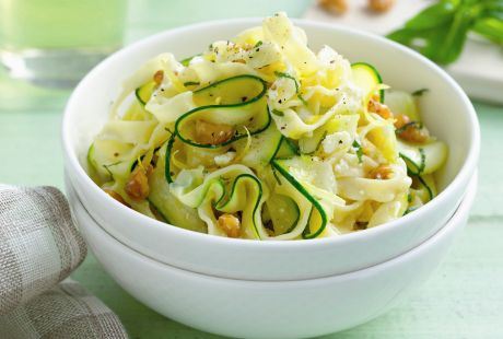 Pred kraj, kad tikvice omekšaju, dodajte i beli luk. Dinstajte još minut-dva, pa umešajte neutralnu pavlaku. Skuvajte testeninu i prelijte tikvicama.