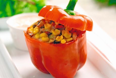 Priprema: Babure operite, izdubite i odstranite semenke, pa ih iznutra posolite i pobiberite. Kuvajte ih 10 minuta u slanoj vodi. Za to vreme ocedite kuvan kukuruz, propržite ga na margarinu i začinite solju, vinskim sirćetom i peršunovim listom.
